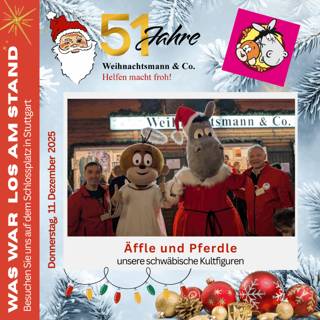 Wie jedes Jahr haben die beiden unseren Stand von Weihnachtsmann & Co. in einen echten Publikumsmagneten verwandelt. Schon von weitem hörte man das fröhliche Lachen der Kinder – und auch die Erwachsenen konnten sich das Schmunzeln nicht verkneifen.