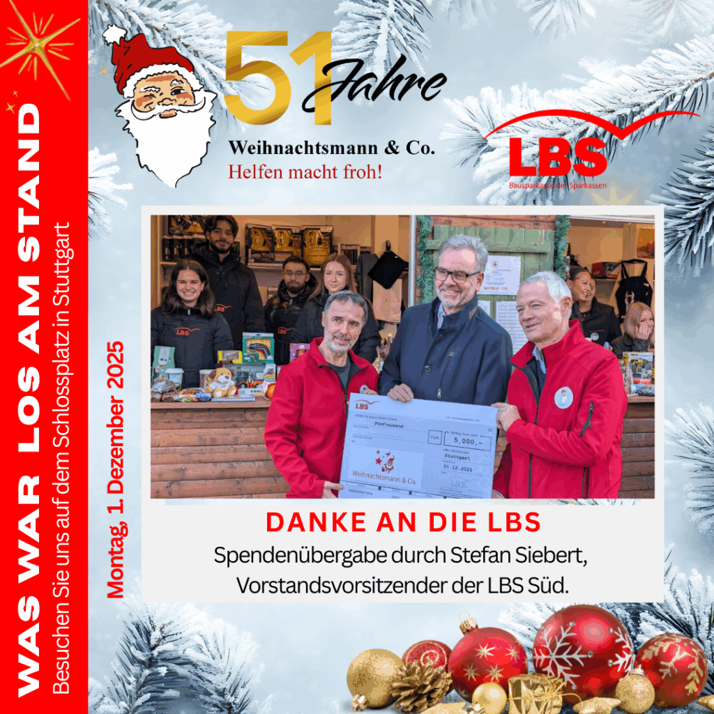 Wir freuen uns sehr, dass Herr Stefan Siebert, Vorstandsvorsitzender der LBS Süd, heute die Spende offiziell an Weihnachtsmann & Co. e.V. übergeben hat.
